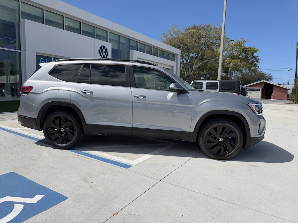 This Volkswagen Atlas has a dependable Intercooled Turbo Regular Unleaded I-4 2.0 L/121 engine powering this Automatic transmission. VOLKSWAGEN LOGO PUDDLE LIGHTS -inc: Front-door mounted (set of 2), PANORAMIC SUNROOF PACKAGE -inc: Power Tilting & Sliding Panoramic Sunroof, FIRST AID KIT -inc: Basic first aid kit for addressing minor injuries, BLACK WHEEL PACKAGE -inc: 20" Multi-Spoke Black Painted Alloy Wheels, Wireless Phone Connectivity.