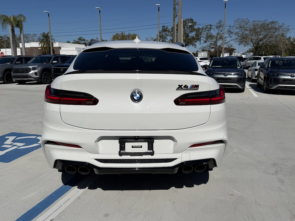 Pricing excludes tax, tag, title and pre-delivery service fee of $999 and private tag agency fee of $24.40. *See below for details..Wow this BMW X4 M includes Competition, Executive, Driving Assistance Plus & Connected Package Pro Packages with a Turbocharged, 3.0L 503 HP 6 Cylinder..8 Speed Sport Automatic Transmission..Extended Merino Leather Upholstery..Extended Shadowline Trim..M Competition Package..M Seat Belts..M Sport Exhaust System..M Sport Seats..21" x 9.5" Fr & 21" x 10" Rr V-Spoke Alloy Wheels..Active Cruise Control Stop & Go + Active Driving Assistant..Extended Collision Mitigation..Ventilated Front Seats..Front & Rear Heated Seats..Power Adjustable, Merino Leather Seats..Gesture Control..Head-Up Display..Heated Steering Wheel..Parking Assistant Plus..12.3" Reconfigurable Digital Guage Display..Wireless Charging..10.25" Touchscreen..Navigation System..3-Zone Climate Control..16 Speaker, Harman/Kardon Audio System..Blind Spot Monitor..Lane Departure Warning..Forward Collision Warning..Backup Camera..Power Sunroof..Power Tailgate..Wireless Apple CarPlay..AWD..All power equipment & more..All pre-owned cars regardless of make and model are driven and evaluated by our highly qualified service personnel. Call Our Sales Team Now at 941-921-8080 for More Info, a Test Drive Appointment or to have a Custom Video Sent to you on this Vehicle. We invite you to come see our brand new state of the art dealership and take a test drive with one of our highly trained Volkswagen Specialists. You will be glad you did. Fast Out Of State Shipping Available..What the reviews say about this car..Tremendously powerful six-cylinder engine. Grip and handling are excellent. Sleeker styling than the related X3 M. Abundance of horsepower, impressively quick acceleration, deft handling. The X4 M carries the same high-performance street cred of the X3 M but with a racier, fastback exterior design. Under the hood is a turbocharged inline-six that makes 473 horsepower in the standard model or a whopping 503 horses in the upgraded Competition trim. The latter delivered the X4 M from zero to 60 mph in an impressive 3.3 seconds at our test track. To go with its high-powered powertrain, the X4 M offers sharp handling, making it a blast to pitch down a twisty road. The Competition model's higher-output engine is worth every penny, so it's the one we'd suggest here. We'd also splurge on both the Driving Assistance Plus package, which adds adaptive cruise control and more advanced driver-assistance features; the Executive package is also an intriguing add as it includes an onboard Wi-Fi hotspot, a head-up display, heated front and rear seats, a heated steering wheel, a wireless smartphone charging pad, and a self-parking feature. When we tested the Competition at our test track, it delivered brutal acceleration, jumping to 60 mph in just 3.3 seconds. That beats the X4's main rival, the Mercedes-AMG GLC63, which blasted from zero to 60 mph in 3.6 seconds. In fact, the X4 M Competition even out-accelerated BMW's famed M3 sports sedan in part due to the added traction that comes from its standard all-wheel-drive system. Upscale and sporty, the X4 M's cabin is crafted from top-quality materials, its layout is driver-focused, and it's easy to find just the right seating position. A host of luxury features is standard. . In lieu of analog gauges, the X4 M and X4 M Competition come standard with a 12.3-inch reconfigurable digital gauge display. Audiophiles will be happy that a Harman/Kardon 16-speaker stereo is standard, so there's no need to pay extra to upgrade. On the road, the X4 M offers an almost unbelievable level of performance and capability, tackling back roads or highway on-ramps with a prowess that would have seemed silly just a few years ago. The steering, handling and raw acceleration are far beyond what most people expect from an SUV.