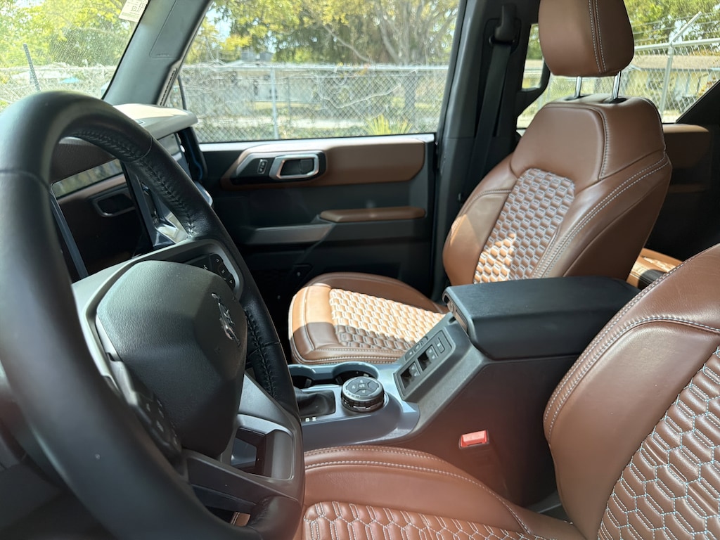 Pricing excludes tax, tag, title and pre-delivery service fee of $999 and private tag agency fee of $24.40. *See below for details..Wow this 4 Wheel Drive Bronco Outer Banks Edition 4Dr includes Package 313A with a 2.3L 300 HP 4 Cylinder..10 Speed Automatic Transmission..Ford Co-Pilot360..Blind Spot Info System..Rear Cross Traffic Alert..Lane Keeping System..Lane Keeping Alert..Lane Keeping Aid..Pre-Collision Assist with Automatic Braking..Pedestrian Detection..Forward Collision Warning..Backup Camera..Front/Rear Parking Sensors..LED Headlights..12" LCD Capacitive Touchscreen with Swipe Capability..360-Degree Camera..8" Digital IP Cluster..Additional Sound Deadening..Information on Demand Panel..Sideview Mirrors..Apple CarPlay/Android Auto..Satellite Radio..Hill Start Assist..Hill Descent Control..Trail Turn Assist..Dual Zone Climate Control..Heated Seats..Sync4..Built-In Navigation System..Terrain Management with G.O.A.T. Modes..Trail Turn Assist..18" Alloy Wheels..Remote Start..Dual-Zone Climate Control..Keyless Entry Keypad..All power equipment & more..All pre-owned cars regardless of make and model are driven and evaluated by our highly qualified service personnel. Call Our Sales Team Now at 941-921-8080 for More Info, a Test Drive Appointment or to have a Custom Video Sent to you on this Vehicle. We invite you to come see our brand new state of the art dealership and take a test drive with one of our highly trained Volkswagen Specialists. You will be glad you did. Fast Out Of State Shipping Available..What the reviews say..Thoroughly livable ride, vast configurability, multiple advantages over the Jeep Wrangler. The Ford Bronco can scratch almost anyone's itch for a cool-looking SUV with mega off-road capability without sacrificing good paved-road behavior in the process. The Bronco is enjoyable to drive and easy to live with. From its character and design to its helpful drive modes and wide availability of its off-road package, the Bronco is the best buy among its competition for most shoppers. From the Toyota RAV4 Adventure to the Honda Passport TrailSport and Chevrolet Trailblazer Activ, the big trend these days is a crossover that looks like it has off-road ability, even if that's not necessarily the case. But what if you actually do need an SUV that can crawl over rocks, traverse muddy terrain and keep you riding high on the dunes? You might want to consider the 2023 Ford Bronco. Whether it's crunching through dense forest trails or quietly idling up to a Wendy's drive-through window, the four-wheel-drive Ford Bronco is arguably the most exciting off-roader since the Jeep Wrangler. A winner of our 10Best Trucks and SUVs award, the Bronco comes in both two- and four-door body styles, and it was designed to do everything a Wrangler canand it does that and more. Yes, you can remove the doors on the Bronco just like you can on a Wrangler, but only the Ford retains its mirrors. Both brands' SUVs cater to the big muddy, but the Bronco suffers from noticeably less road noise when traveling the highways between puddles. It has more base horsepower too. Every Bronco sends power to all four wheels, and its independent front suspension is more sophisticated than Jeep's front stick axle. After our first driving impressions, the Bronco impressed us with its on-road refinement. Not only is its steering more precise than the Wrangler's wheel, but the Ford simply handles better overall. Available with two or four doors, softtops or hardtops, and removable body panels, the Bronco offers the same open-air possibilities that make the Wrangler an outdoor person's delight. The Ford's interior has a few more innovations than the Jeep too. The off-road driver aids not only welcome rookies, but tools such as the Trail Turn Assist add genuine fun even for seasoned off-roaders. The Bronco offers praiseworthy capability and character in equal measure. . Its rugged design looks cool without trying too hard.