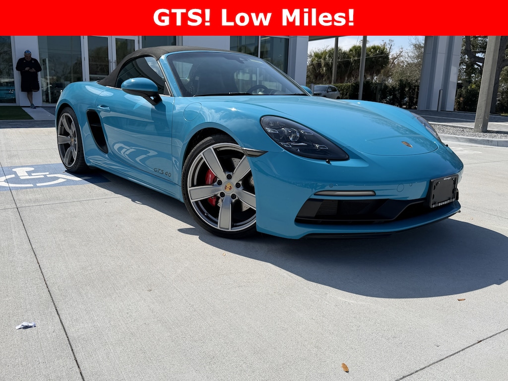 Pricing excludes tax, tag, title and pre-delivery service fee of $999 and private tag agency fee of $24.40. *See below for details..Only 8,712 Miles!..Wow this 718 Boxster GTS Roadster includes Premium Package with a 4.0-Liter Naturally Aspirated, 394 HP Boxer 6 Cylinder..7-Speed Porsche Doppelkupplung Automatic Transmission..Top Track Speed,179 MPH..Acceleration 0-60 MPH, 3.8 Seconds..Sport Chrono Package..Porsche Torque Vectoring..20" Alloy Wheels..Convertible Top with Fully Electric Operation..Sport Exhaust System..LED Headlights with Porsche Dynamic Light System Plus..Light Design Package..Power Folding Exterior Mirrors..Lane Change Assist..Backup Camera..Front/Rear Park Assist..Porsche Entry & Drive..Heated Multifunction Steering Wheel..10 Speaker, 505 Watt BOSE Surround Sound System..Heated/Ventilated Adaptive Sport Leather Seats (18-way) with Memory Package..Porsche Entry & Drive..Bi-Xenon Headlights..Dual Zone Climate Control..HomeLink..Bluetooth..Apple CarPlay..Satellite Radio and much more...All pre-owned cars regardless of make and model are driven and evaluated by our highly qualified service personnel. Call Our Sales Team Now at 941-921-8080 for More Info, a Test Drive Appointment or to have a Custom Video Sent to you on this Vehicle. We invite you to come see our brand new state of the art dealership and take a test drive with one of our highly trained Volkswagen Specialists. You will be glad you did. Fast Out Of State Shipping Available..What the reviews say..The 2021 Porsche 718 Boxster GTS 4.0 Is Basically Perfect. Careful evolution and a 4.0-liter 'six produce one of the best sports cars on sale today. Is anyone surprised? The 718 Boxster GTS 4.0 is one of the best sports cars on sale now. It's everything you hope it is. I imagine you're less than shocked by this conclusion, which in fairness was somewhat foregone. Porsche simply put a killer engine in a car we already love. This is that rare thing, a car that feels right the moment you drive away. The seating position and the control weights are absolutely spot on, as you'd expect from a Porsche, and the car immediately feels lightweight and poised. The 981 Boxster and Cayman had brilliant chassis from day one, and they were notably improved with the launch of the 982-generation 718 Boxster and Cayman. The chassis of the GTS 4.0 is largely the same as the old four-cylinder 718 GTS, and it's sublime. Even with the GTS's standard lowered Sport suspension, the ride is incredibly comfortable, the damping just about perfect. I was surprised by the free-revving nature of this flat-six given its relatively large displacement. Blip the throttle and it responds instantly; keep your foot in it and it'll charge towards the redline with ease. It's also remarkably linear, with a smooth powerband from top to bottom. You don't miss the turbo four-cylinder's torque either, thanks to the six's large displacement providing great flexibility. And just with every Boxster before it, this GTS 4.0 is remarkably easy to live with for a two-seat sports car. It's no harder to daily-drive than, well, anything else, and you'd be surprised at how much stuff you can get into the two trunks. Porsche has pushed the 718 Boxster GTS closer to perfection. As I said, this is likely a forgone conclusion. But don't let that take anything away from one of the best sports cars you can buy right now. Tested: 2021 Porsche 718 Boxster GTS 4.0 Sings a Flat-Six Tribute. Porsche drops a spectacular naturally aspirated flat-six screamer in the Boxster for the first time since the turbo-four cars arrived for 2017. "So, you want a six-cylinder," Porsche seems to be asking rhetorically as it reinstates a screaming, naturally aspirated flat-six into the 718 Boxster and Cayman lineups after switching exclusively to turbo-four power starting for 2017. "How about the most powerful, highest revving one ever?" All GTS models have a two-mode sport exhaust with a button on the center console to make it louder.